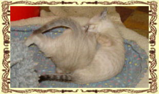 Fifille de couleur seal tabby point. Chaïna séjourne maintenant dans les Ardennes françaises. Comme vous pouvez le voir, elle est très acrobate, mais aime aussi le doux réconfort de la chaleur.